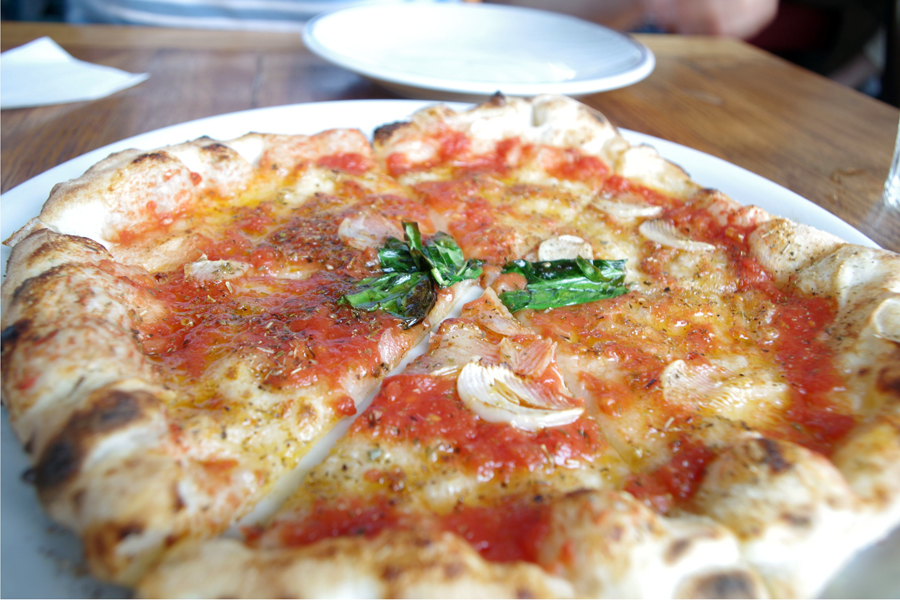 12時少し前に着き、お目当てのピッツァダダへ。お店に向かいながら念のため予約をしておいたら、開店前からの大行列...行く際は予約した方が賢明です。まずはシンプルなマリナーラ(ニンニク・オレガノ・ポモドーロ)。シンプルなので生地の美味しさが際立ちます。決してオイリーではなく、本当にジューシーです。