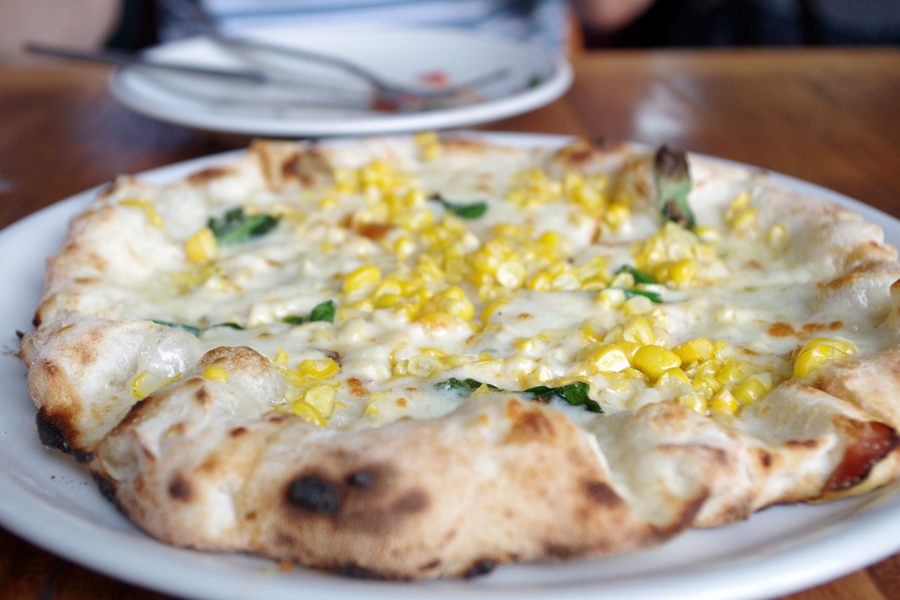 2枚目は季節もの、トウモロコシとスカモルツァチーズ。新鮮鎌倉野菜を使っているので、トウモロコシがシャキシャキしています。通常のナポリピザよりやや小ぶりなので、もう少し欲しいなぁといつも思ってしまいます。