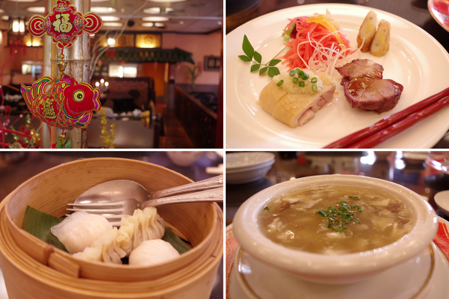 2人で特選点心膳をオーダー。最初にやってきた前菜4種盛りに驚いて・・・お次の牛肉と豆腐のとろみスープでノックアウト!2段重ねの蒸篭に入った点心4種は言わずもがなの美味しさです。