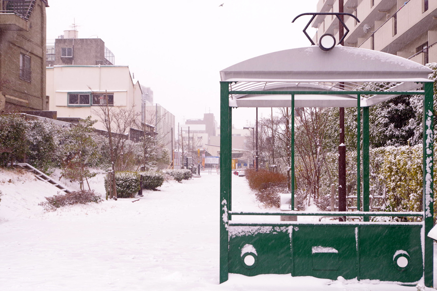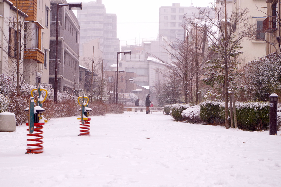 お店近くの遊歩道、朝の9時頃で積雪は5cmくらい。
