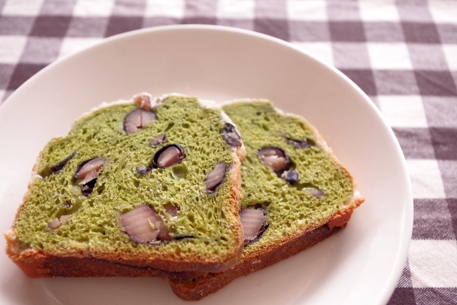 抹茶のブリオッシュ、大納言入り。