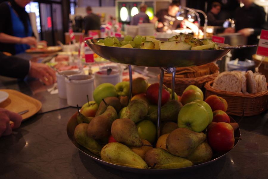 果物もたっぷり。小ぶりなリンゴはナフキンで拭いて、丸かじり。