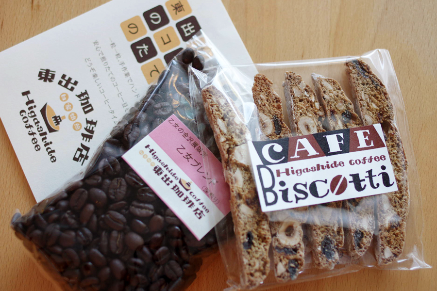 買い求めたのは、東出珈琲店の珈琲豆とビスコッティのセット。香ばしくざくざくのビスコッティはしっかりとした味わいの珈琲とよく合いました〜。