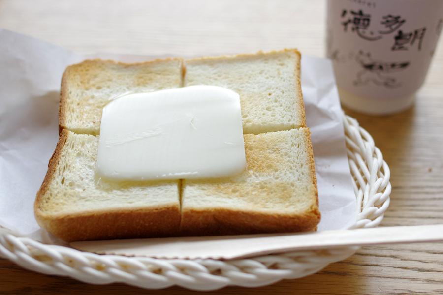 トーストの上には薄〜くスライスしたカルピスバター、有塩バターの塩気が程よい。焼きたてのトーストをちぎると縦にちぎれていく感じも、出来立てをいただけるパン屋さんならではの贅沢。。。これが1枚95円、一緒に頼むと飲み物が100円引きになるので、飲み物を頼んだ方がお得になるびっくりな計算です。