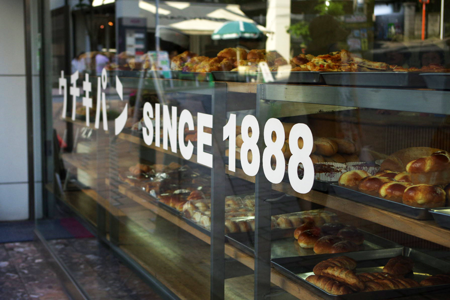 1888年創業、明治時代からの老舗パン屋さん。なつかし系パンからパネトーネなどの他ではあまり見ないものまで、ヴァラエティ豊かな品揃え。常連さんも多いようで、お目当ての品をぱっと取ってレジに向かう姿を多く見ました。