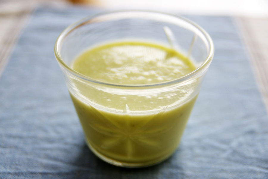 合わせたのは、ほうれん草・パイナップル・バナナのグリーンスムージー。有機のほうれん草なので、嫌なエグミはなく香り豊か。何だか元気になる朝食となりました。