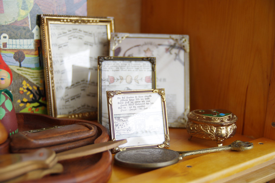 フォトスタンドや真鍮の手鏡など、ヴィンテージ感満載のコーナーも。