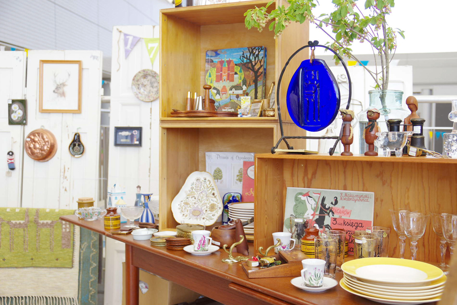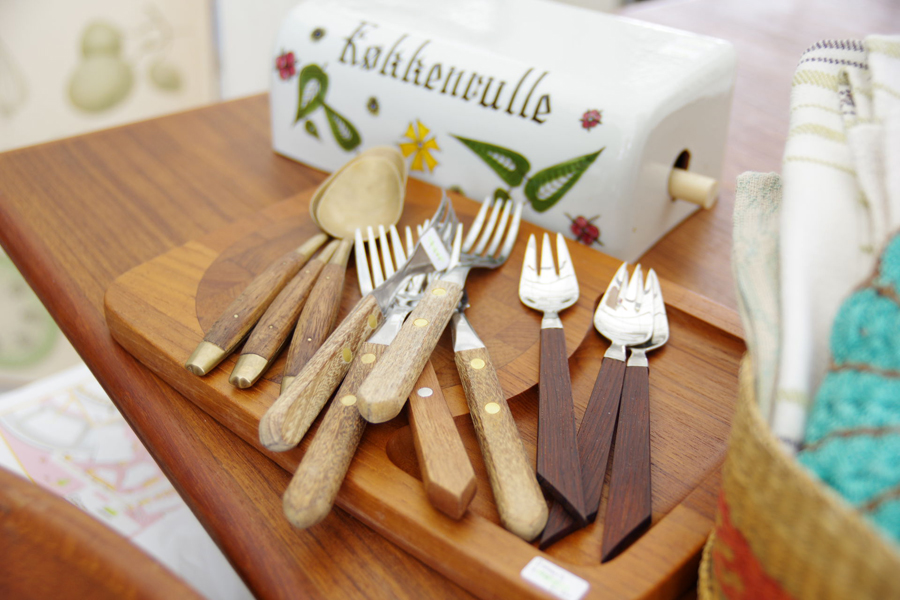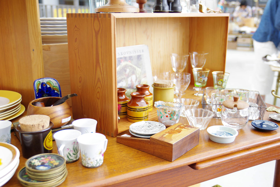 器やカップは実店舗で扱うアラビアやグスタフスベリなどの高価なものではなく、蚤の市らしいコチャッと感を出して。中にはお値打ち品があったり。。