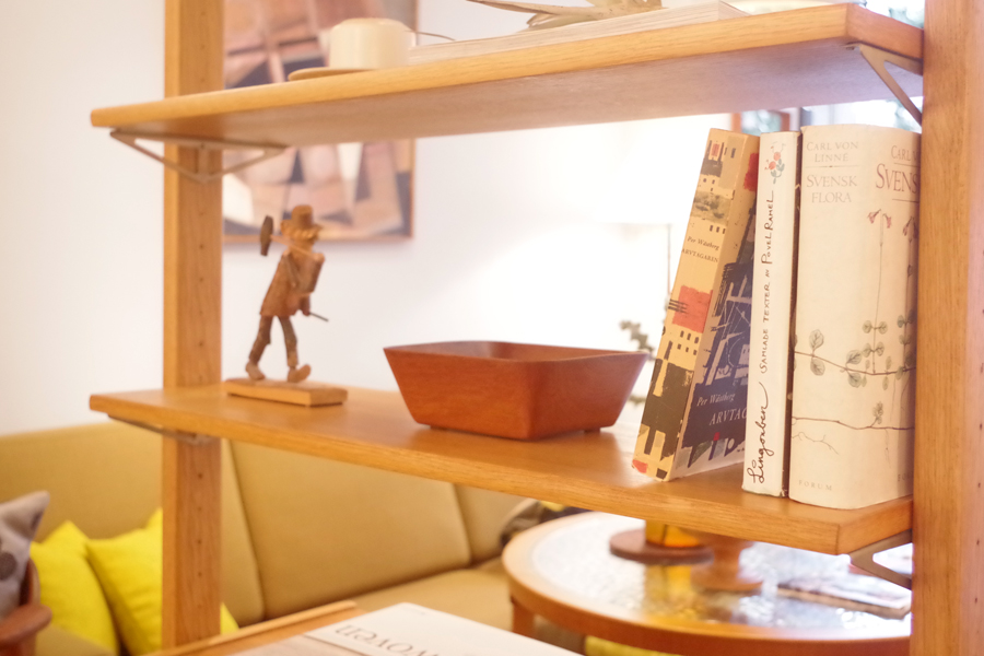 窓際には、ちょうど撮影したばかりのプランターを。チーク材の脚部にコッパー(純銅製)の箱を合わせていて、私たちも初めて扱うデザインです。コッパーは良い具合にくすんだ経年感が出ていて、部屋の中ではスッと周りに溶け込んで単体で見るよりも魅力が増します!しっかりした造りなので、仕切りを合わせて本も一緒にディスプレイしても良いですよ。