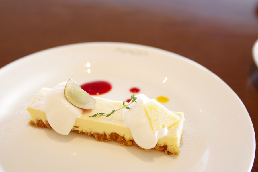 朝からうどん漬けのお腹に染み渡るチーズケーキ。