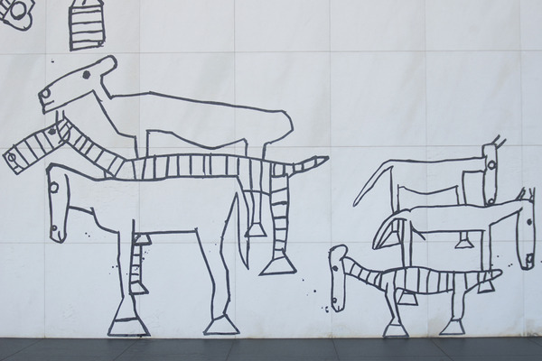 最初の案はマルとバツの幾何学模様だったそうですが、最終案では猪熊さんが愛するモチーフのひとつの馬に。