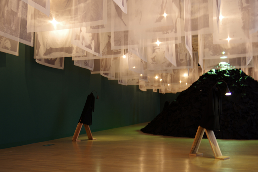 「ぼた山」「スピリット」「発言する」。鉱山採掘の際に出る捨て石を積み上げた山である”ぼた山”、その周りを歩いていると黒い服の作品の周りを彷徨う魂。この展覧会では壁の仕切りを含めた作品構成は、すべてボルタンスキー自ら行ったそう。この大空間では制作時期が10年以上異なる作品を組み合わせることで、全体をひとつと捉えた新たな意味づけをされているように感じました。