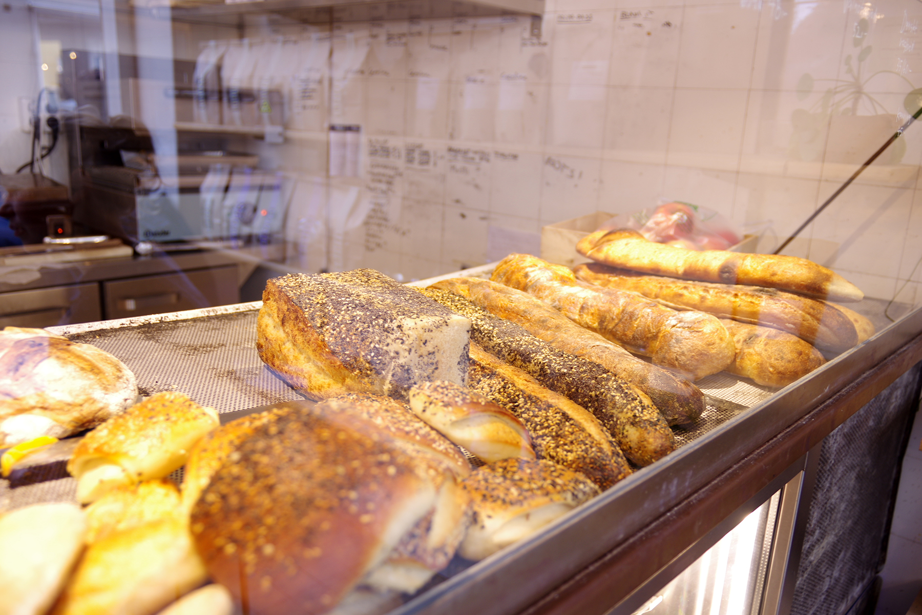 白を基調とした可愛らしい店内。ご近所に人気のパン屋さんなようで、店内は満席&持ち帰りの人も次から次へとやってきます。