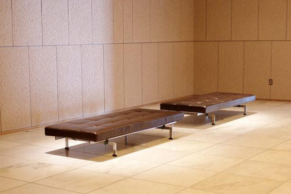 そしてポール・ケアホルムのベンチソファ。国立新美術館など他の美術館でも使われていますが、これは数十年前から使い続けられたもの。レザーがしっとりとして、手入れがしっかりとされていて素晴らしいですね。。