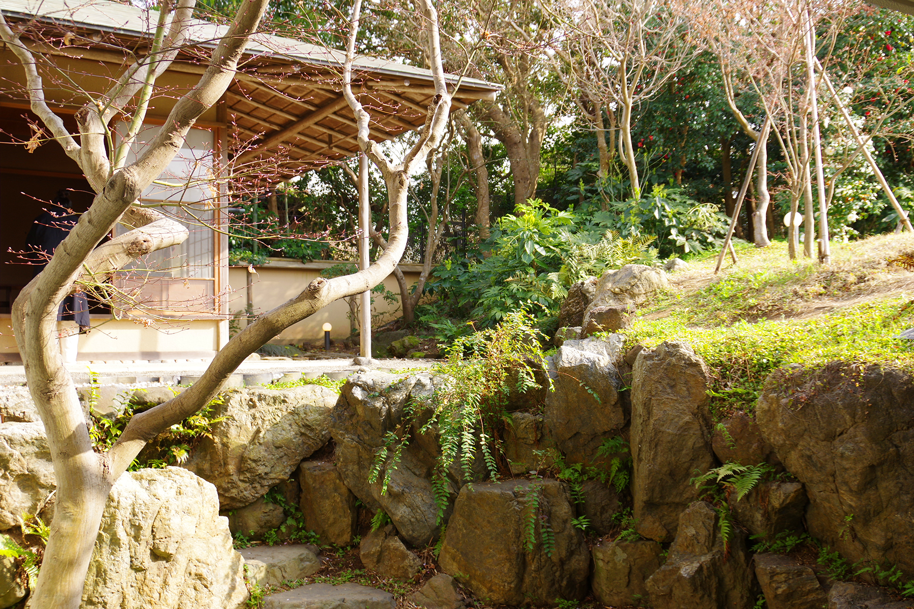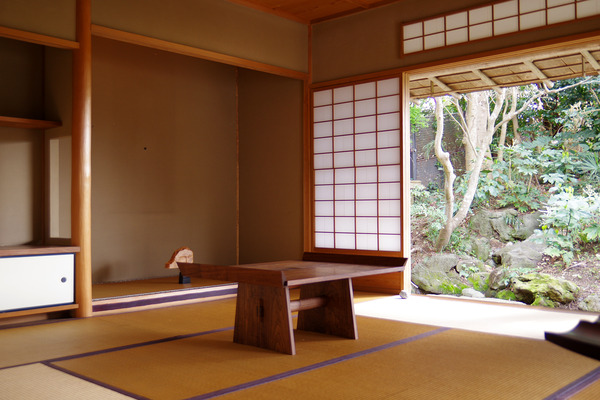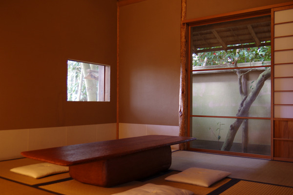 こちらは茶室ということで、先ほどのモルタルの空間とは打って変わって数寄屋造りの静謐な空間。