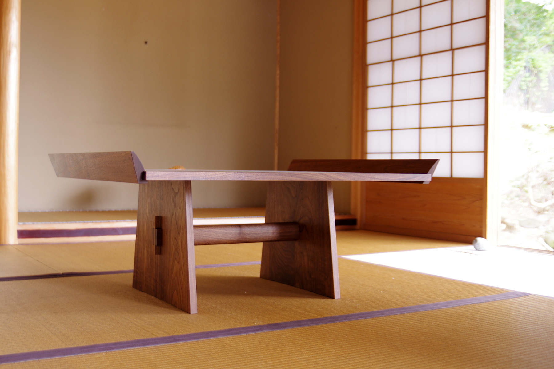 中央に置かれたのは「ミルクハウステーブル」。第二次世界大戦中に日系人収容所に収容されたナカシマは、レーモンドが見受けすることで出所。その後レーモンド所有の農場にあった小谷の名前が”ミルクハウス”。こちらもオリジナルに近づけた復刻版なのだそう。