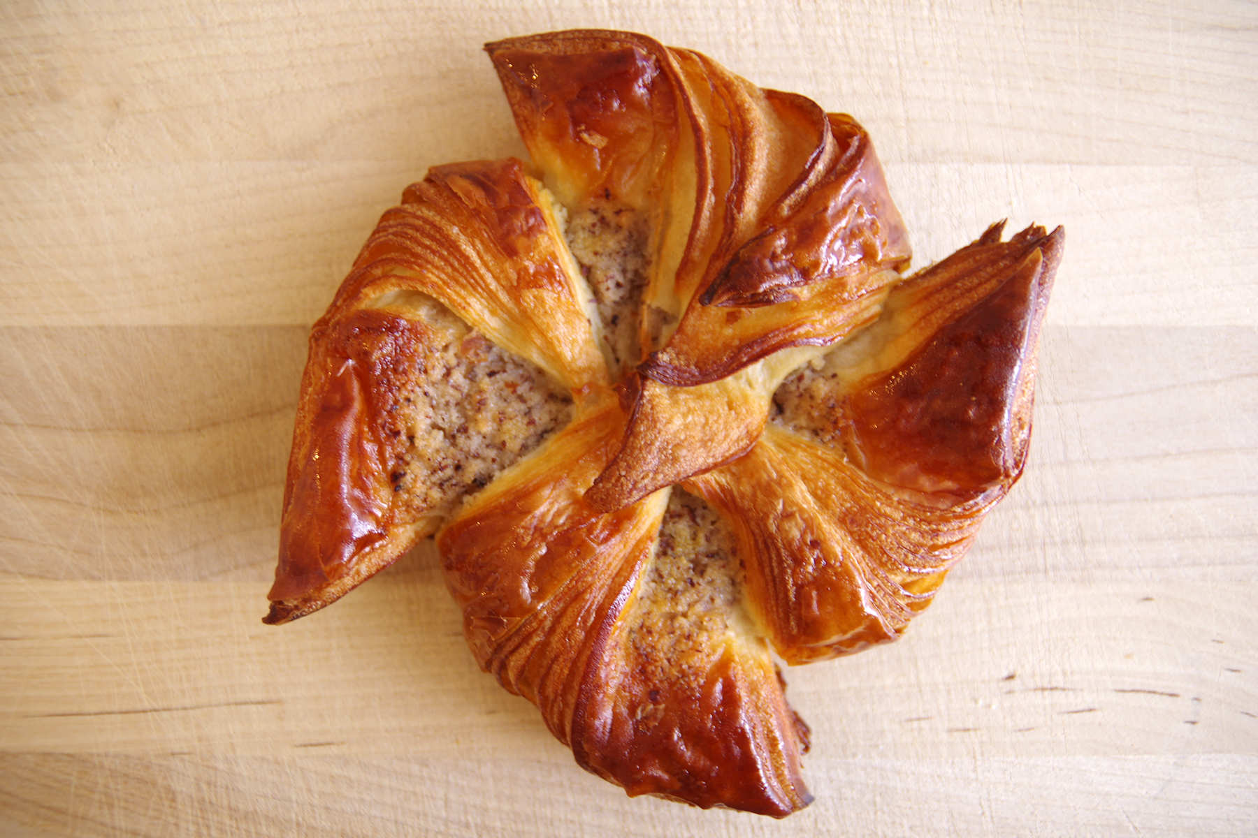 「ムーラン ノワゼット」その名の通りの風車(=フランス語でムーラン)の形。見た目の美しさはもちろん、羽根の先はバリバリとした食感を楽しめます。