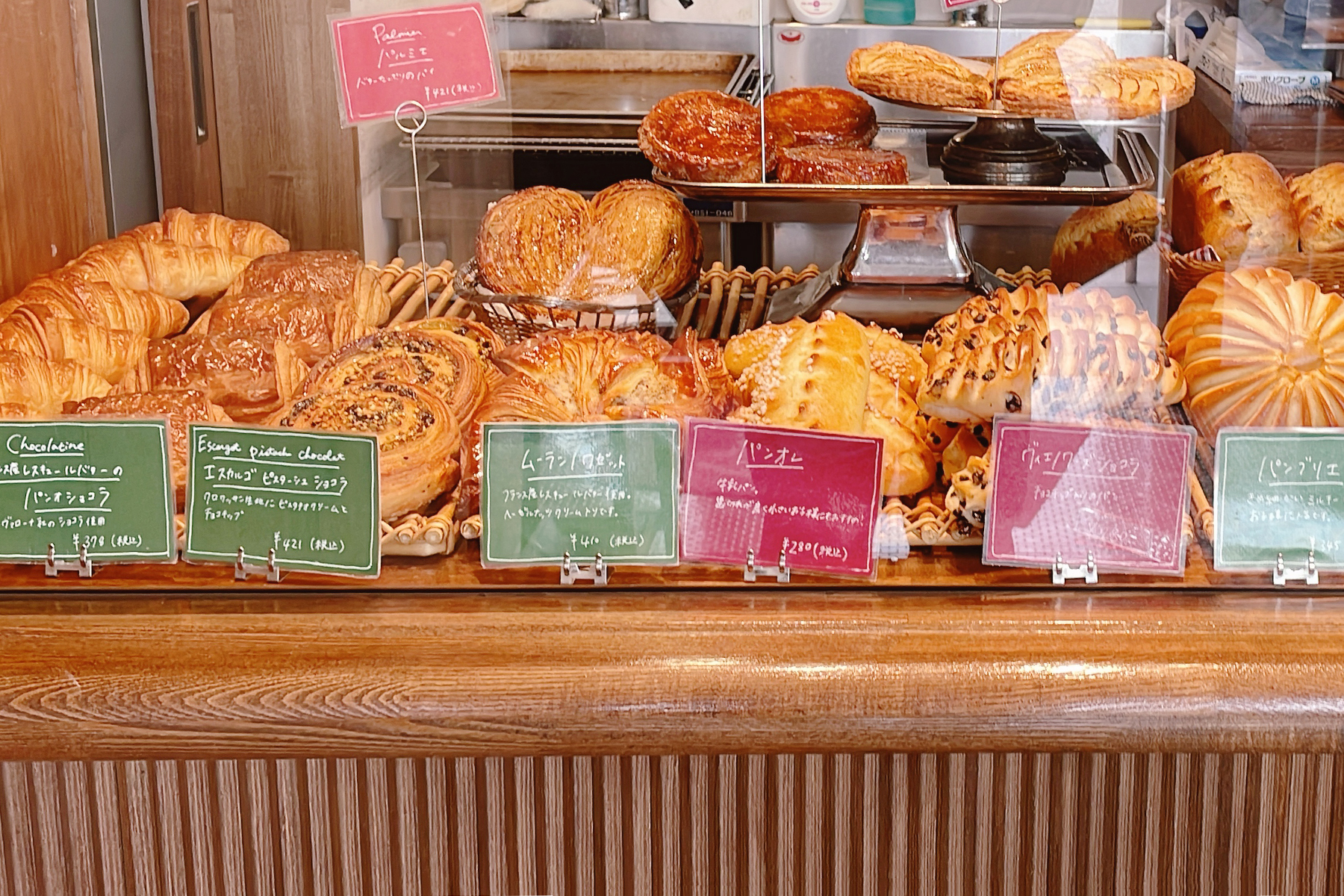 対面式のショーケースで、店員さんに取っていただくスタイル。丹精な顔立ちのパンが整然と並ぶパリ然とした姿、ここから選ぶワクワク感は以前と同様ですね。