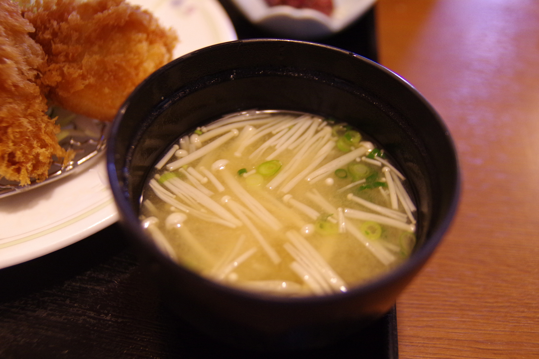 アジフライ2枚はさっくり軽い衣をまとって、中はフワフワの特別食感。レモン汁と塩でいただくと、新鮮な風味が際立ちますね〜(トンカツもそうですがソースではなく塩&レモン派です!)。