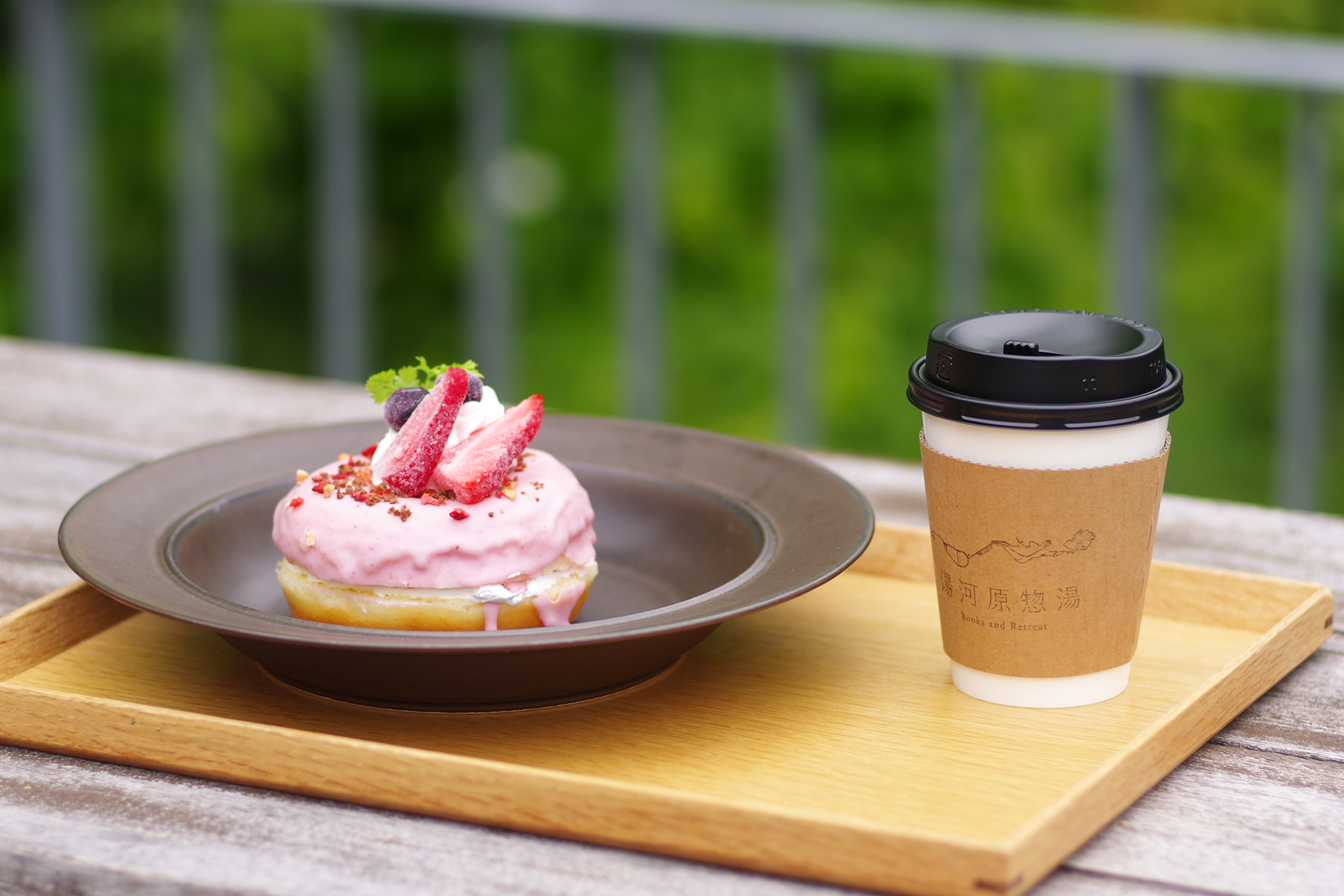 手前のテラス席にていただきます!こちらはサリュオーナーの珈琲ドーナッツ。