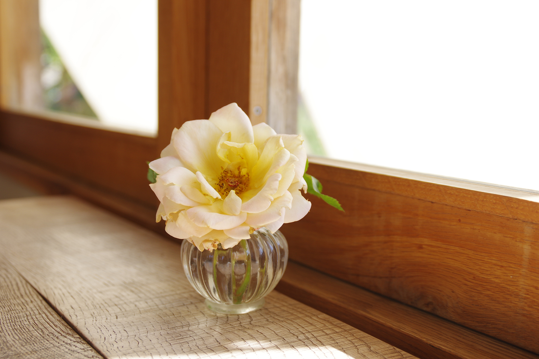 テーブルにはいつも季節の美しい花が一輪挿しに飾られていて、こんな一つ一つの気遣いから穏やかな空気が生まれるのかもしれませんね。