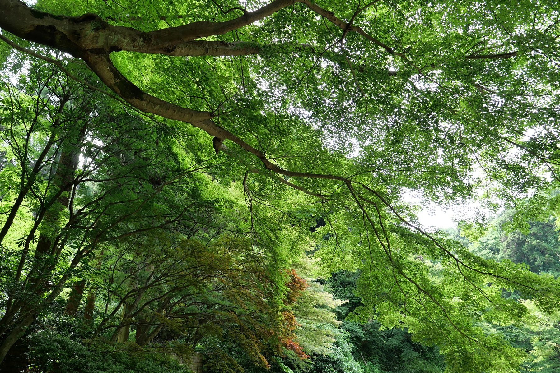 見上げると立派な青紅葉が日陰を作ってくれていて、秋にはまた異なる景色になるのでしょうね。