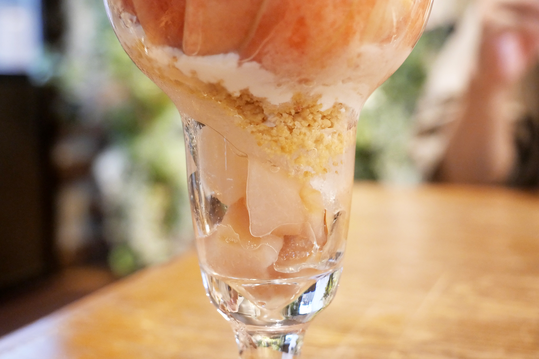 下側には自家製桃ジェラートやコンポート、クランブルが入っています。
