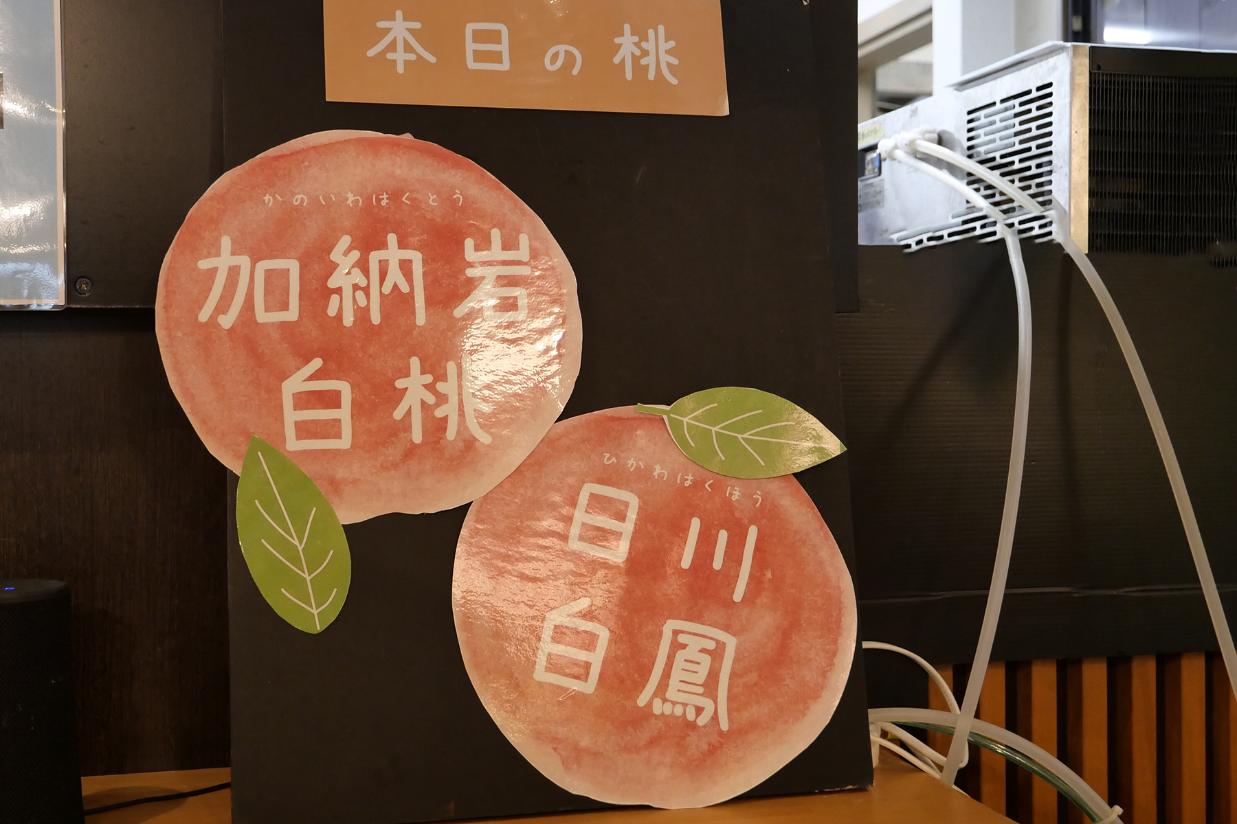 50品種以上を育てている桃農家さんゆえにその時々の旬の採れたてを使っているそうで、今日はこの2品種なのだそう。