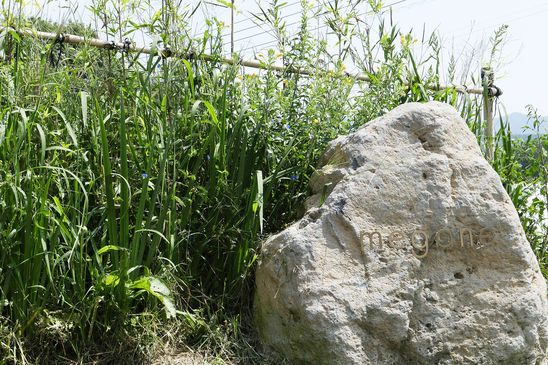 八ヶ岳山麓にあるベーカリーレストランのmeganeへ、大きな石を使った表札にデンマークを感じます(デンマークでは番地などのサインでよく見ます)。