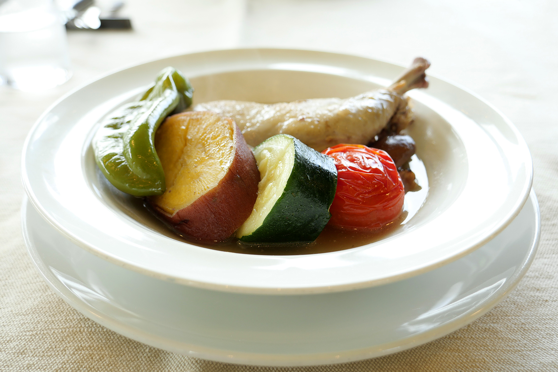 そしてメインに選んだのは「信玄鶏と野菜のポ・ト・フー」。ホロホロ崩れるほどにやわらかい鶏肉とそこからでた旨みたっぷりのスープ、厚切りの野菜もすべてが素直な味わいで体に染み渡ります。