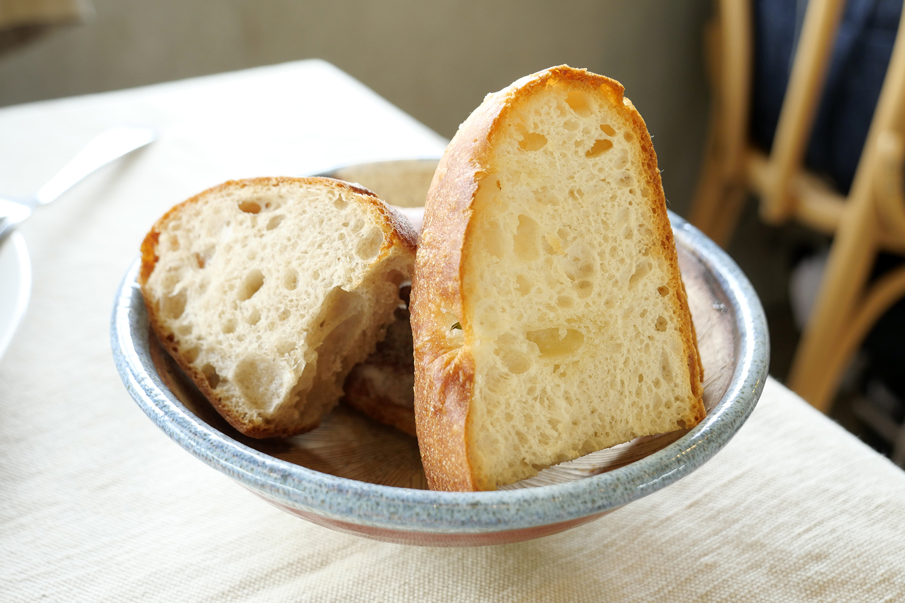 付け合わせのパンはカンパーニュとフォカッチャの2種類で、贅沢な焼きたて!