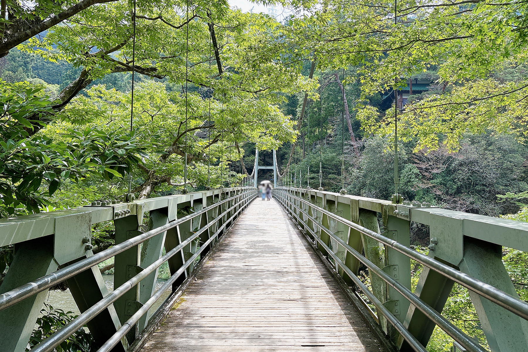 ガーデンのパラソルの先には吊り橋があり、ちょっとした散策もできるようになっていたりと旅感が高まります!