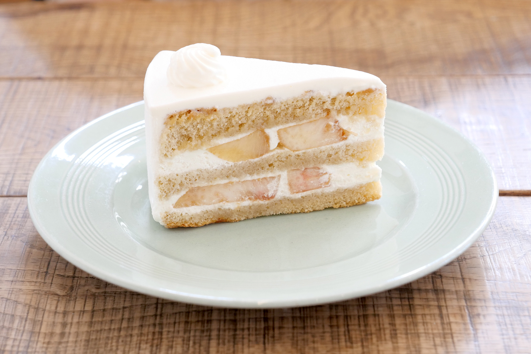 この日のサリュオーナーは「桃のショートケーキ」、しっとりとした生地に大きめの桃がゴロリと入っています。