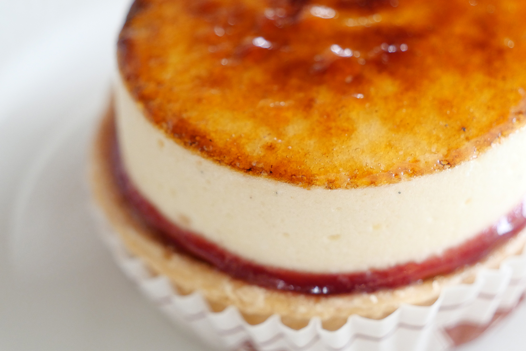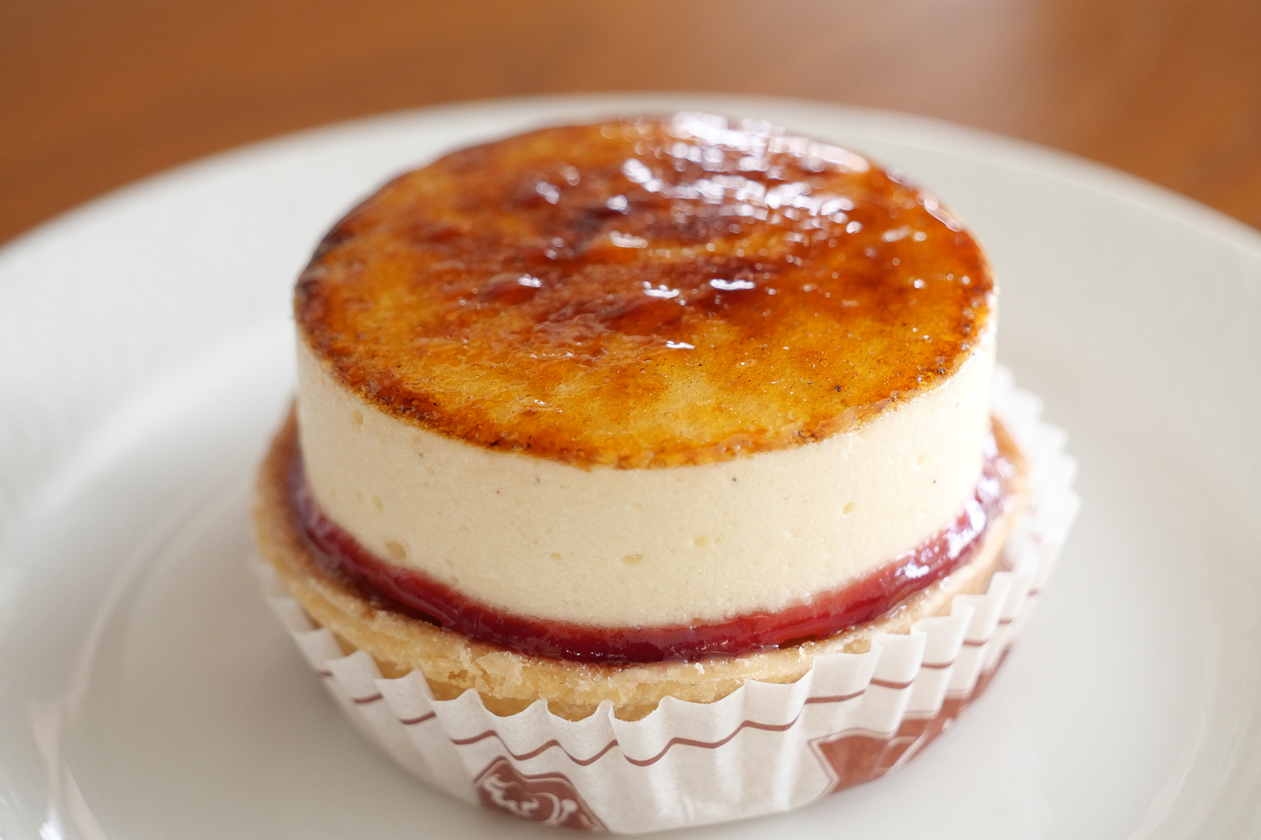 その上にはフワンボワーズの飾りをまとったクレーム・シブーストが綺麗にキャラメリゼされています。クレーム・パティシエール(カスタードクリーム)にイタリアンメレンゲを混ぜ合わせたもので、ジュワッと繊細な食感。ザクっと全部の層をいただくと、主役のりんごをふわりとクレームをまといタルト部分で風味を増して…ととてもバランスん取れた美味しさでした。