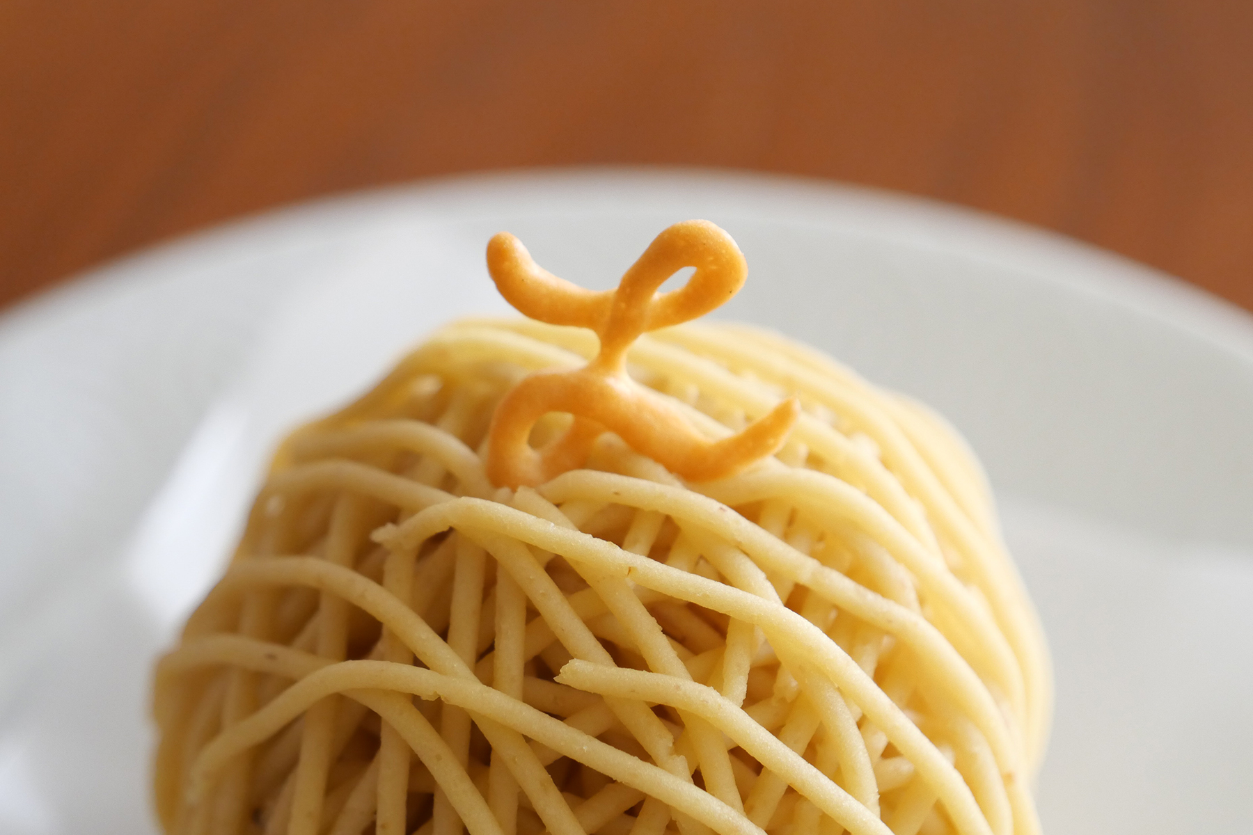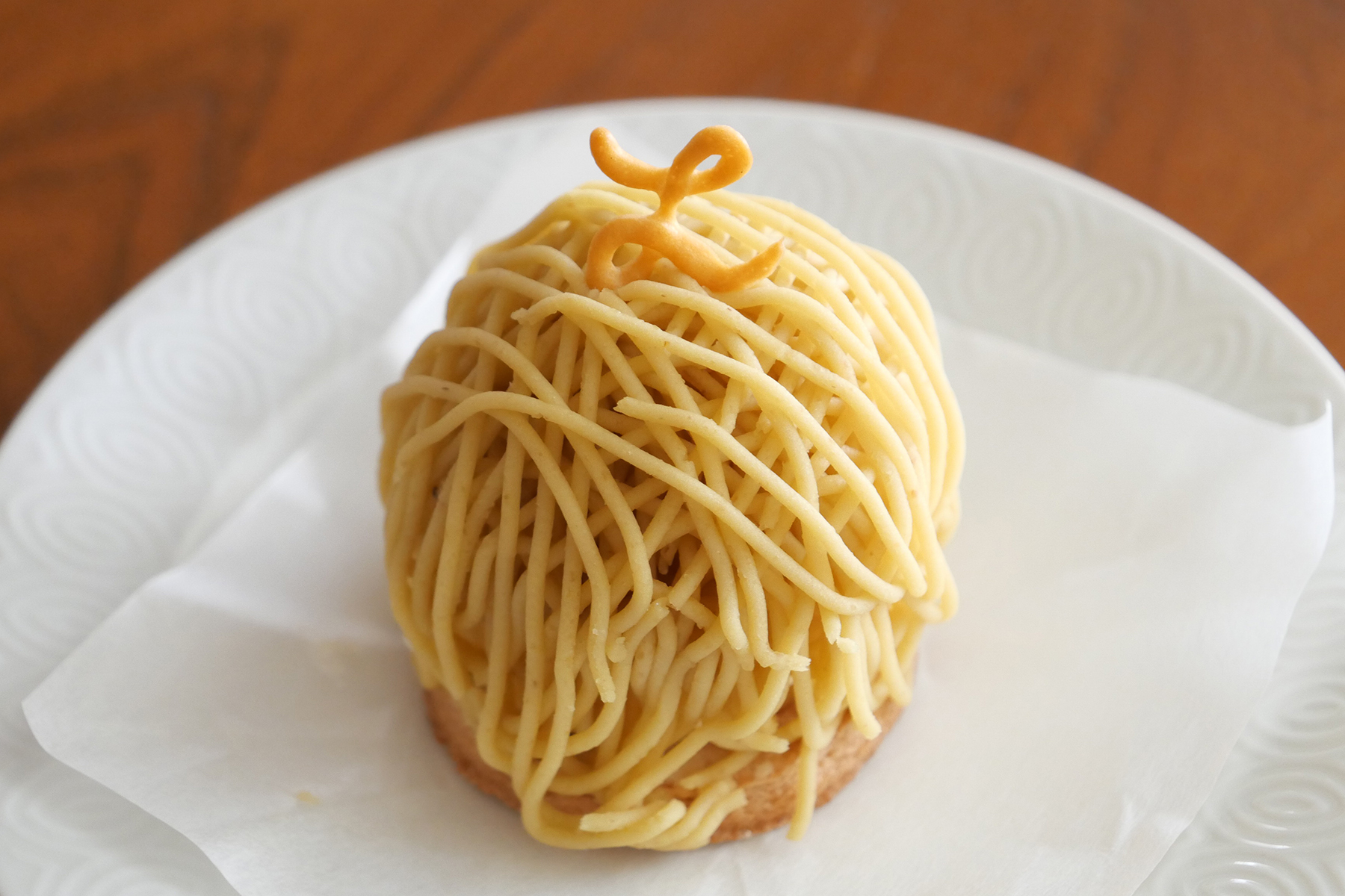そしてお待ちかねの「モンブラン」!土台にはダックワーズ、栗の甘露煮が一粒、周りにクレーム・シャンティ(甘さはごく抑えめの泡だてた生クリーム)、そしてマロンクリームがたっぷりと絞られています。完璧な味の構成に嬉しさを感じて食べ進めていきます。巨大化するモンブランが多い中、こちらはもうひとつ食べたくなる余韻のある終わり〜今年もいただけたことに感謝です。
