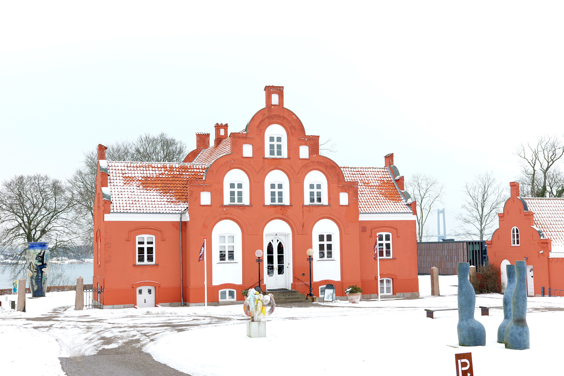 デンマークの中でもあまり見ない朱色の特徴的な建物は、1856年に当時著名な建築家が設計した別荘建築で外観はルネサンス様式のもの。