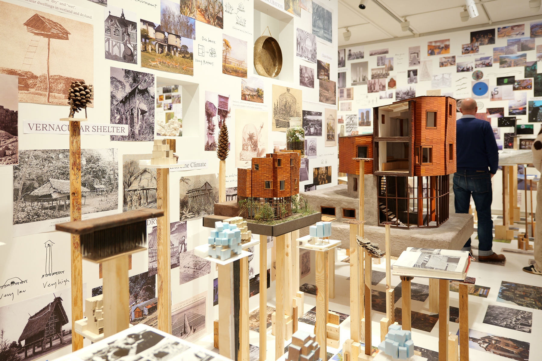 模型や写真だけでなく関連した素材なども含むインスタレーション形式で、見応えのある会場構成!