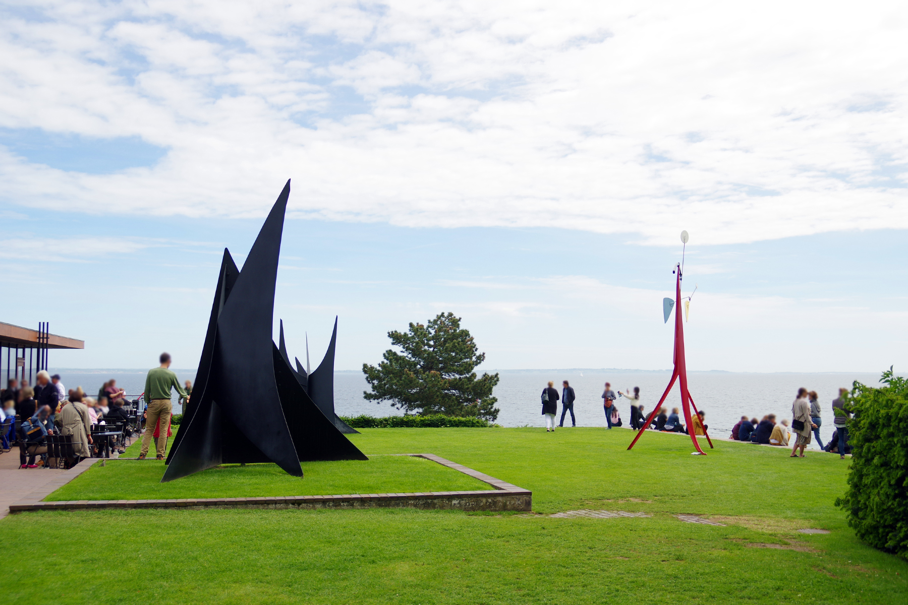 ミュージアムカフェのテラス席にはカルダー作品の置かれています。エーレスンド海峡の先に見えるのはスウェーデンです!