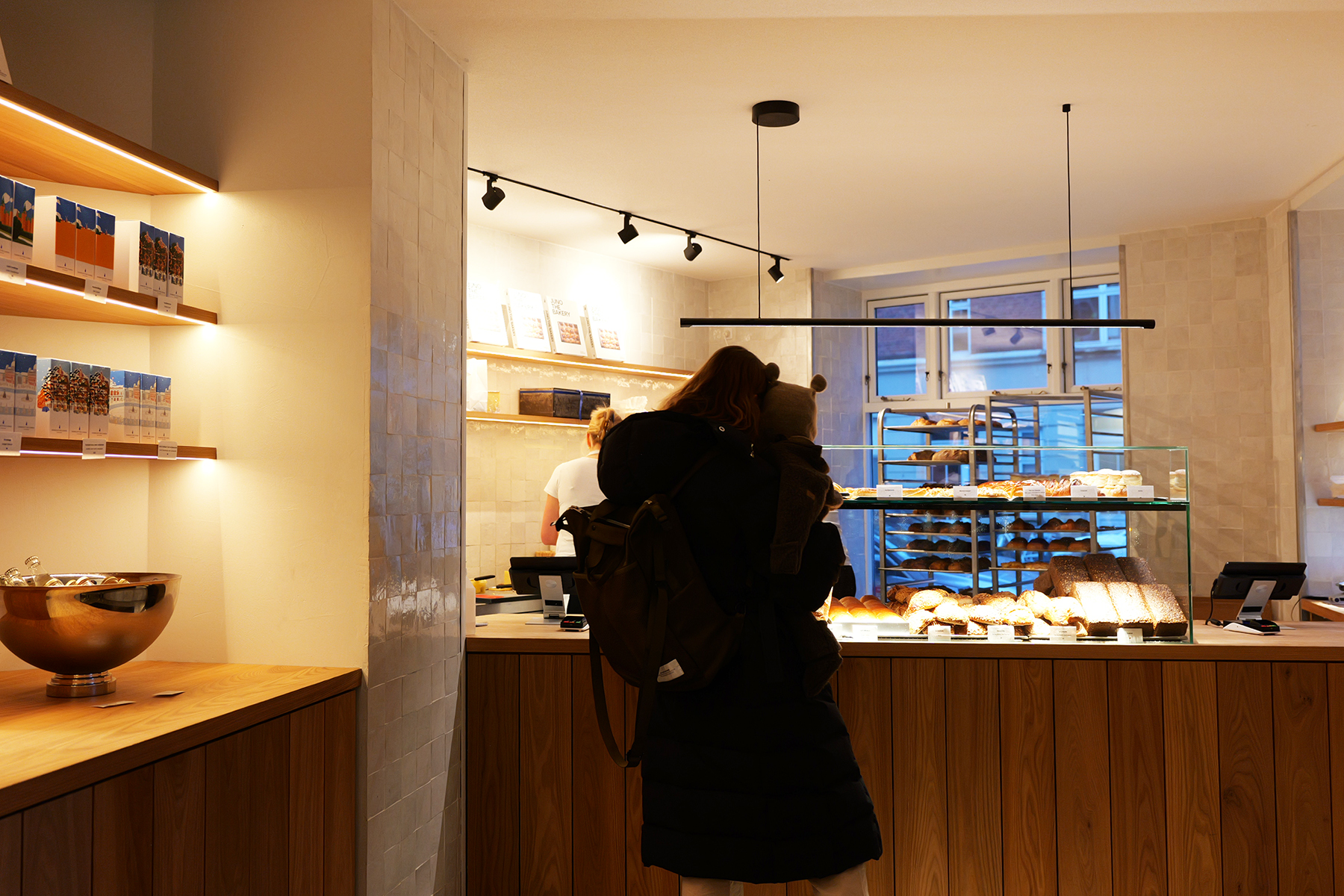 そして1年ぶりにご対面のセムラ!他店同様Fastelavnものはおそらくこの日が最終日、駆け込みセーフで購入できました〜。カルダモン入りブリオッシュ生地の丸パンの頭を落とし、リッチなアーモンドクリームを絞ってからローストアーモンドをぱらりと散らして、甘さのほとんどないクレーム・パティシエールを絞って完成。素材の良さや甘みが抑えめなことで、その見た目からは想像できないほど軽やか。2人で1つをシェアすると少し物足りなく感じるほどでした。昨年も再びコペンハーゲンのベストシティベーカリー2025に輝き、益々の人気店になっているのでしょうね。