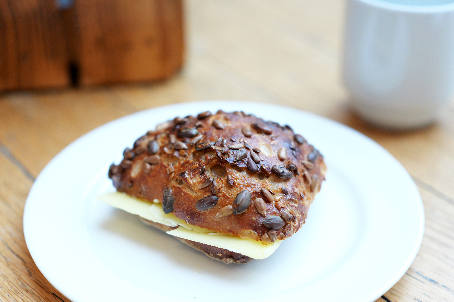 宿に戻って朝食用のBMO(Bolle med Ost)をいただきます。サワードゥの小ぶりなブレッドはシードがたっぷりまぶされたものをチョイス。歯切れの良いクラストは小気味良い音を立てて中のクラムはしっとりとした抜群の食感。挟まれたコンテチーズはさらに長期熟成されたAged Comteを使っているので、よりナッティで複雑な味わいがサワードゥの風味に負けない美味しさでした。