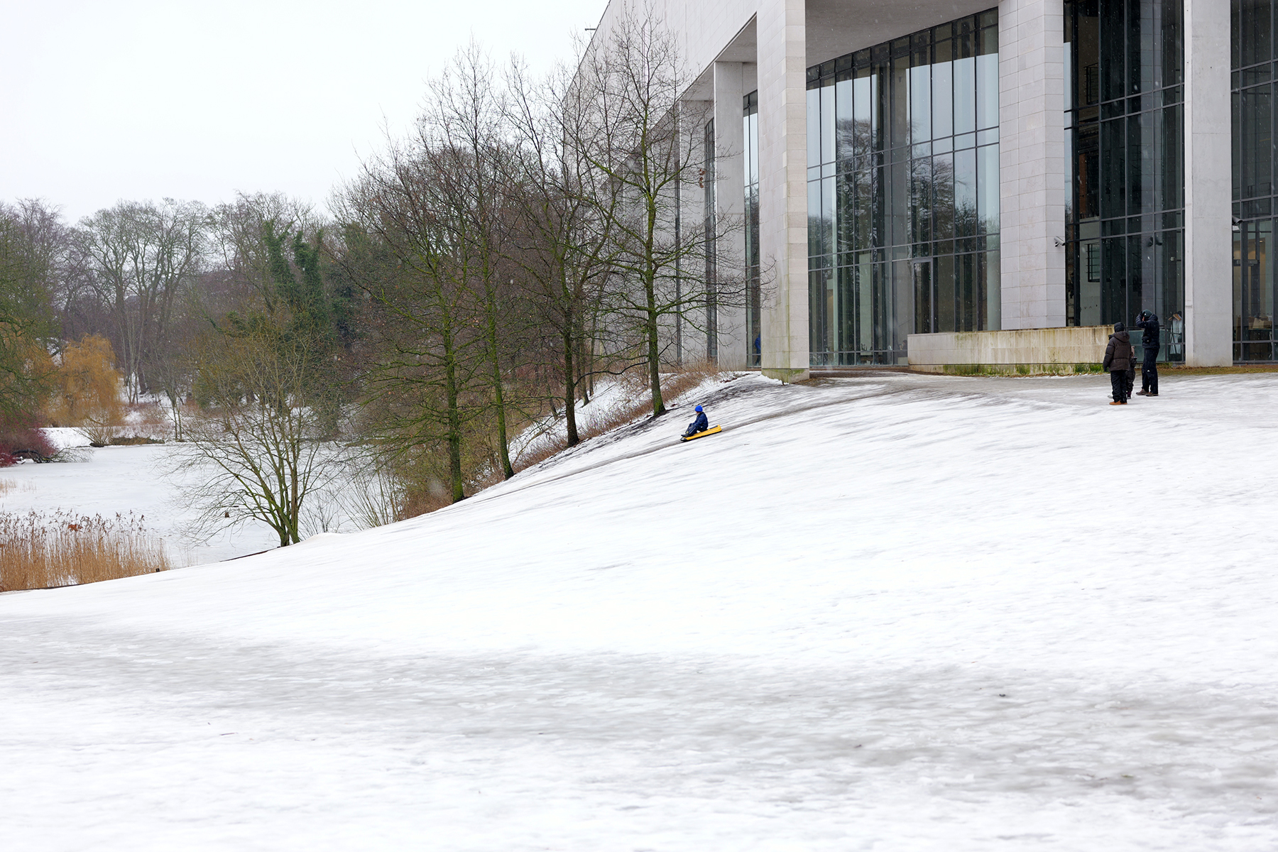 先日訪れた美術館の裏ではそんな中でも最後まで雪を楽しもうと、ちびっこがそり遊びをしていました(想像を絶するスピードで駆け降りていきました〜)。