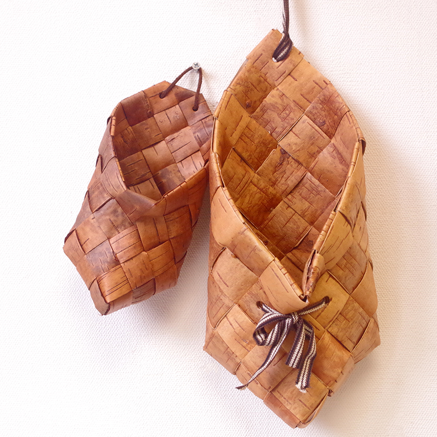 【Day.9】デンマークで買い付けました2種類のソーイングボックス(1枚目)と、スウェーデンで買い付けました靴型の白樺小物入れ。