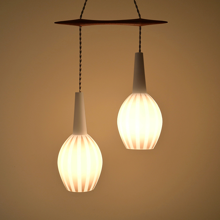 HOME › news › 新商品入荷のおしらせ › Hanging lamp with 2shades in glass and teak をアップしました