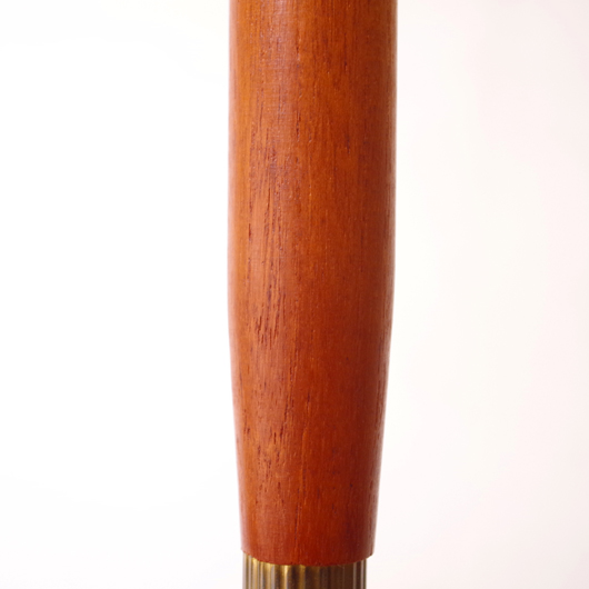 1950年代デンマーク製の、伸縮式ヴィンテージフロアランプです。縦にスリットの入った真鍮にチーク無垢材の装飾が付いたポールが目を引きます。特徴はポールの長さを30cm程調整ができる伸縮機能で、空間や合わせるソファなどに応じて高さを変えてご使用いただけます。 シェードは本体の雰囲気を引き立てるものを国内にてオーダーしました。不規則な折りの繊細なプリーツが特徴で、光を透過させる素材のためにサイズ感以上に明るく感じます。新しく交換したコードなども、ヴィンテージの風合いに合うデザインをセレクトました。お使いのインテリアにプラスするだけで、お部屋の雰囲気をぐっと増してくれます。 電気工事士の資格を持つ職人によりソケット・コード・プラグ等の電気に関わる部分は全て交換し、電気用品安全法に基づいた点検なども行いPSEマークを表示しておりますので、新しいもの同様に安心してご使用いただけます(詳細下記ご参照)。 丁寧な修復を行い、綺麗な状態です。真鍮部分は良い風合いに経年変化しておりますので、ピカピカには磨かずに味わいを残しました。詳しくは画像にてご確認ください。