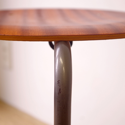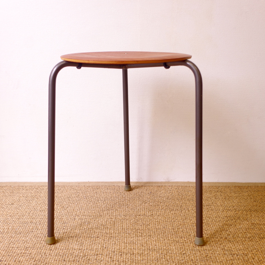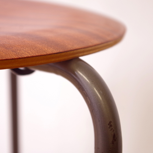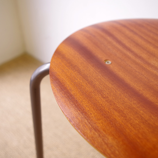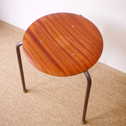1960年代デンマーク製の、ヴィンテージスツールです。座面に用いられたマホガニー材のストライプ柄のユニークな木目が印象的です。厚みを抑えたプライウッドにプレスを掛け、座面に緩やかな凹みを持たせています。それにより良好な座り心地となっています。 玄関先に置いて靴を履く時に使用したり、リビングやダイニングに置いても部屋のインテリアのアクセントとなることと思います。 丁寧な修復を行いまして、きれいな状態です。詳しくは画像をご覧ください(1脚ずつの販売です)。