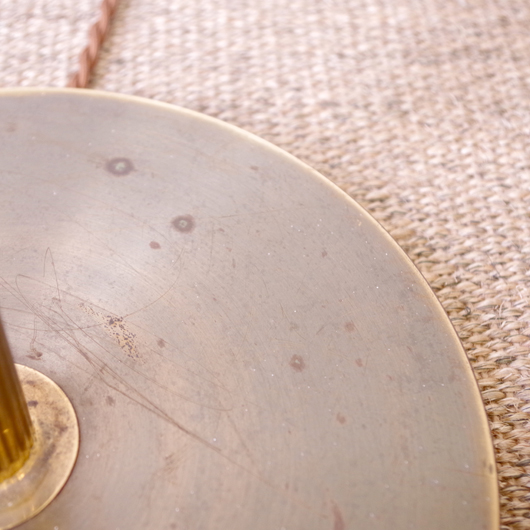 1960年代デンマーク製のヴィンテージフロアランプです。鈍い光を湛える真鍮を主とした支柱には、ワシントン条約のレッドリストに入っている高級木材であるローズウッドとのコンビネーションで作られています。その落ち着いた佇まいから、上質さを部屋にプラスしてくれるのではないでしょうか。また30cmほど伸縮できる支柱のため、置く場所に合わせ高さを変えてお使いいただけます。 シェードはデンマーク製の新しい物に交換致しました。規則正しいプリーツが、明かりを灯した時に格別の表情を見せてくれます。 電気工事士の資格を持つ職人によりソケット・コード・プラグ等の電気に関わる部分は全て交換し、電気用品安全法に基づいた点検なども行いPSEマークを表示しておりますので、新しいもの同様に安心してご使用いただけます(詳細下記ご参照)。 真鍮部分はヴィンテージの風合いを生かすために、強い磨きは避けました。美しい経年変化をお楽しみいただければと思います。なおシェードのプリーツにシワが見受けられますが(水色の矢印部分ご参照)、製品クオリティーとしてご了承ください。詳しくは画像にてご確認ください。