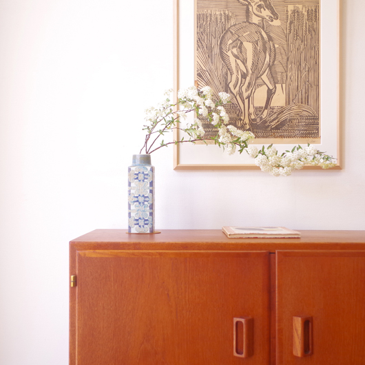 Borge Mogensen(ボーエ・モーエンセン)1914-1972 デンマーク・オールボー生まれ。20歳でマイスターの資格を取り、ウェグナーと同時期にコペンハーゲン芸術工芸学校で、さらに王立芸術アカデミー家具科でコーア・クリントのもとで学びます。 その後、デンマークの生協と言うような生活協同組合F.D.Bの家具部門の責任者として、一般の消費者へ向けて派手さはないけれど、美しく丈夫で長持ちする家具を作り続けました。 『シンプルかつ実用的な家具を、リーズナブルな価格で提供すること』を信念として、椅子だけでなく機能的な収納家具も数多く残しています。