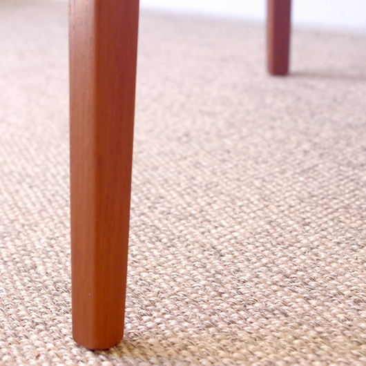 1960年代デンマーク製の、ヴィンテージサイドテーブル。まるで”かざぐるま”の羽のように、3枚の突き板が渦巻き模様を作り出す天板に目を奪われます。その下には辺に膨らみのある三角形ルーロー・トライアングルの形をした棚板が付いており、すっと伸びた脚が本体を支えています。 特徴は何といっても、突板の高度な貼り合わせ技術による天板の細工。特にこちらは板目のダイナミックな木目が、目を楽しませてくれます。一見するとシンプルなようで、職人の技術の上に成り立っている遊び心とこだわりの詰まった一台です。 ソファの横に置いて天板にはコーヒーカップを、下のラックには雑誌やリモートコントローラーを置いたりと、暮らしに寄り添った使い方が思い浮かびます。チーク材の暖かな色味が北欧のヴィンテージらしく、部屋の雰囲気作りに活躍してくれそうです。 丁寧な修復を施しまして、非常に綺麗な状態です。天板には多少の水濡れにも問題のない塗装を施しております。詳しくは画像にてご確認ください。