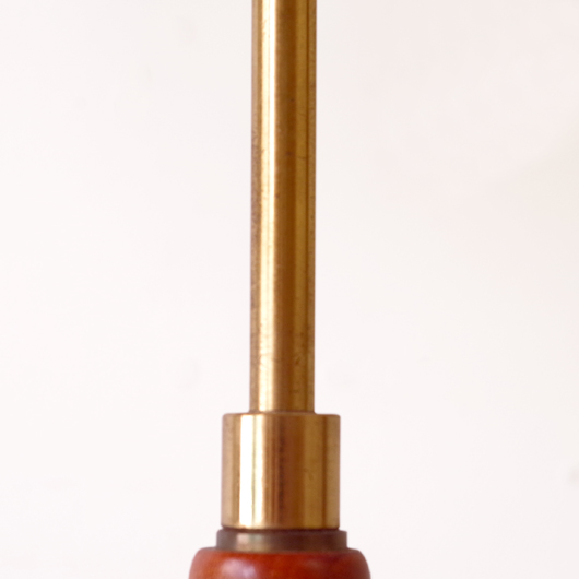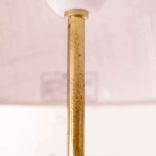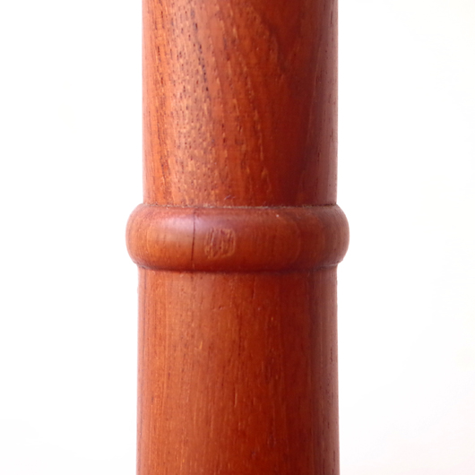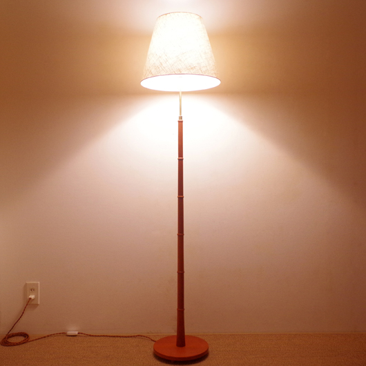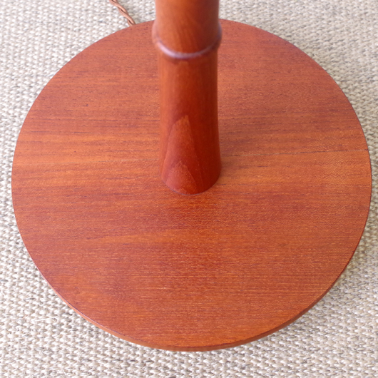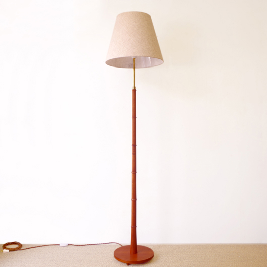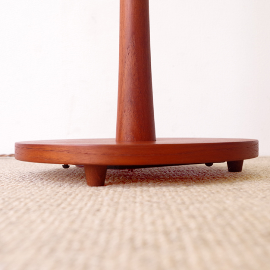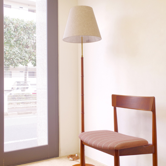 1960年代デンマーク製のヴィンテージフロアランプ。支柱上部を真鍮に、その下からベースまですべてチーク材を用いた、とても雰囲気のある一台です。チーク無垢材の削り出しによる支柱には、途中に同素材の節を挟み込み、単調になりがちな支柱デザインにリズミカルな印象を与えています。 シェードはリネン地のニュアンスのあるものに交換しており、ぬくもりのある灯りをお楽しみいただけます。新しく交換したコードなども、ヴィンテージの風合いに合うデザインをセレクトました。お使いのインテリアにプラスするだけで、やわらかな灯りによってお部屋の雰囲気をぐっと増してくれます。 電気工事士の資格を持つ職人によりソケット・コード・プラグ等の電気に関わる部分は全て交換し、電気用品安全法に基づいた点検なども行いPSEマークを表示しておりますので、新しいもの同様に安心してご使用いただけます(詳細下記ご参照)。全体として綺麗な状態です。詳しくは画像にてご確認ください。