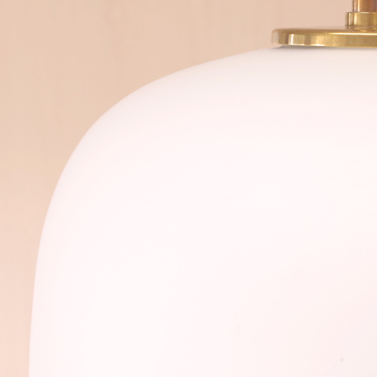 1945年ヴィルヘルム・ラウリッツェンがデザインしました、ルイスポールセン社製のヴィンテージ ペンダントランプ。 絶妙なフォルムや開口部の角度など、時を感じさせない普遍的な美しさを感じます。もともとは自身の設計したRadiohus(デンマーク国立放送局)と合わせてデザインされ、王立音楽アカデミーとなった今でも当時の照明が現役で使われております。また氏の設計事務所に勤めていたフィン・ユールも、自邸の書斎で同タイプの照明を使用していました。 ガラスは艶消しのタイプで、落ち着いた明かりを作り出してくれます。3種類あるサイズの中で一番小さなものとなります。天高のある吹き抜けなどに吊り下げますと、とても絵になる一灯です。表面にスレなどが見られますが、天井から吊り下げての使用の際は、まず気にならないかと思います(画像で示した小さなチップは、上部真鍮金具で隠れる部分です)。 電気工事士の資格を持つ職人によりソケット・コード・プラグ等の電気に関わる部分は全て交換し、電気用品安全法に基づいた点検なども行いPSEマークを表示しておりますので、新しいもの同様に安心してご使用いただけます(詳しくは下記をご覧ください)。